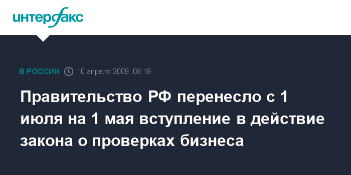 Правительство РФ перенесло с 1 июля на 1 мая вступление в действие закона о проверках бизнеса