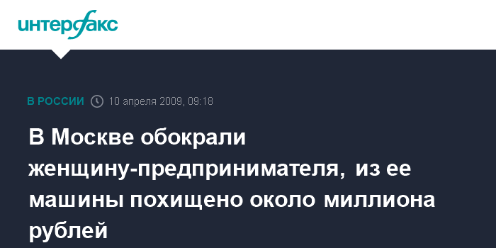Москва. 10 апреля. INTERFAX.RU - На севере Москвы у генерального директора коммерческой компании из автомобиля украли крупную сумму денег, сообщил в пятницу "Интерфаксу" источник в правоохранительных органах города.