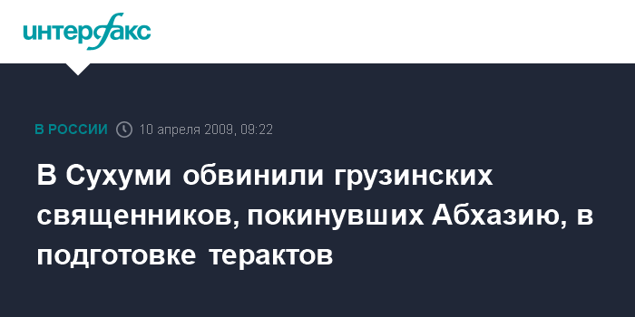 "В результате проведенных спецслужбами Абхазии профилактических мероприятий были найдены неопровержимые доказательства причастности грузинских священников Тариела Гурчиани (отец Георгий), Шоты Кобалия (отец Бидзина) и Тенгиза Квирквелия (отец Забулон) к подрывным и аморальным действиям, направленным на совершение актов насилия и дестабилизации обстановки в Республике Абхазия", - говорится в заявлении МИД Абхазии, распространенном в четверг пресс-службой ведомства.