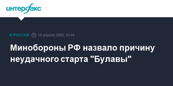 Москва. 10 апреля. INTERFAX.RU - В Минобороны России разобрались с причинами неудачного старта новейшей стратегической ракеты морского базирования "Булава", сообщил замглавы ведомства Владимир Поповкин.