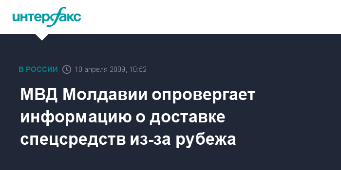 Москва. 10 апреля. INTERFAX.RU - МВД Молдавии опровергло информацию о том, что в Кишинев доставлены из-за границы спецсредства для пресечения массовых беспорядков.