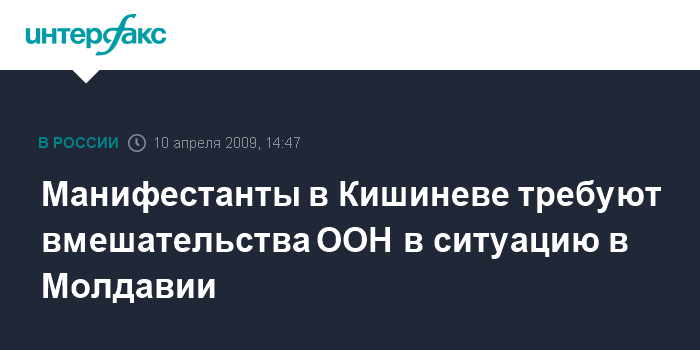 Кишинев. 10 апреля. INTERFAX.RU - Срочного вмешательства ООН в ситуацию в Молдавии требуют сотни манифестантов, собравшиеся в пятницу днем на площади в центре Кишинева.