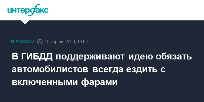Москва. 10 апреля. INTERFAX.RU - Главный российский автоинспектор Виктор Кирьянов поддерживает предложение депутатов Госдумы о постоянном использовании ближнего света фар движущегося автомобиля.