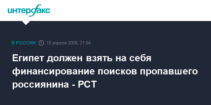 Египет должен взять на себя финансирование поисков пропавшего россиянина - РСТ