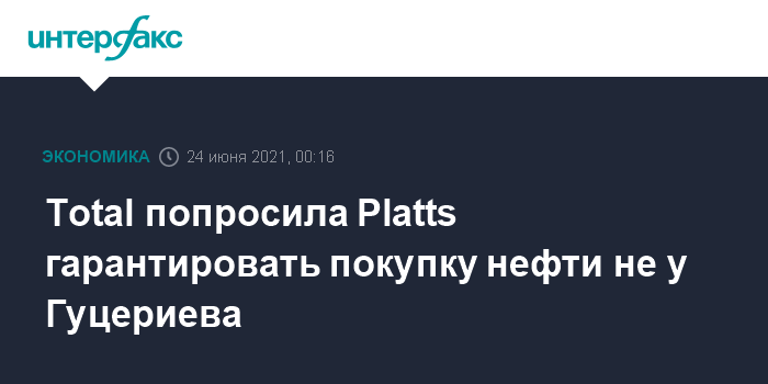 Москва. 23 июня. INTERFAX.RU - Французская Total обратилась в ценовое агентство S&P Global Platts с просьбой обеспечить гарантию того, что партии нефти в его торговой системе не принадлежат компаниям попавшего под санкции Евросоюза Михаила Гуцериева.