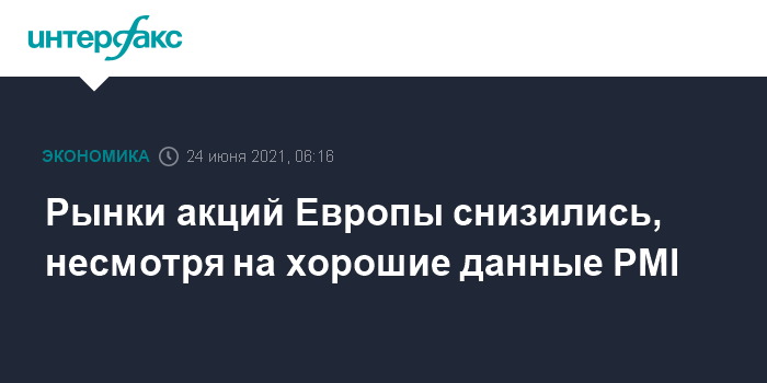 Москва. 24 июня. INTERFAX.RU - Фондовые индексы стран Западной Европы снизились по итогам торгов в среду, несмотря на оптимистичные данные PMI.