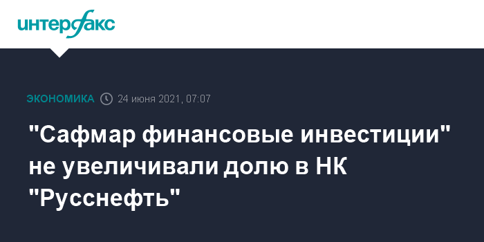 "Сафмар финансовые инвестиции" не увеличивали долю в НК "Русснефть"