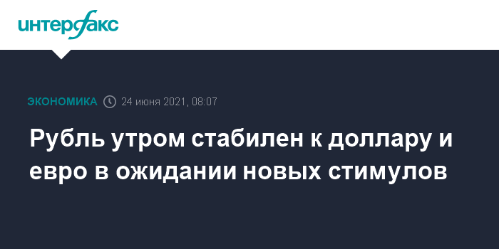 По мнению экспертов "Интерфакс-ЦЭА", рубль стабилен к доллару и евро на старте торгов 24 июня из-за отсутствия явных триггеров к движению. Рост цен на нефть эталонных марок, стимулировавший укрепление рубля накануне, замедлился в четверг утром.