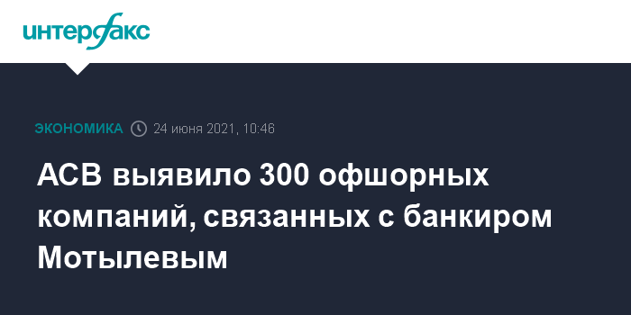 Москва. 24 июня. INTERFAX.RU - Юристы Агентства по страхованию вкладов (АСВ) выявили свыше 300 офшорных компаний, связанных с банкиром Анатолием Мотылевым, в отношении которого в РФ и Великобритании идет процедура личного банкротства, рассказал в интервью "Интерфаксу" глава АСВ Юрий Исаев.