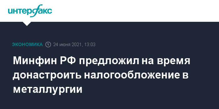 Москва. 24 июня. INTERFAX.RU - Минфин РФ предлагает в дальнейшем донастроить налогообложение металлургической отрасли с учетом роста цен в периоды благоприятной внешнеэкономической конъюнктуры.