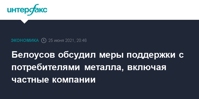 Белоусов обсудил меры поддержки с потребителями металла, включая частные компании