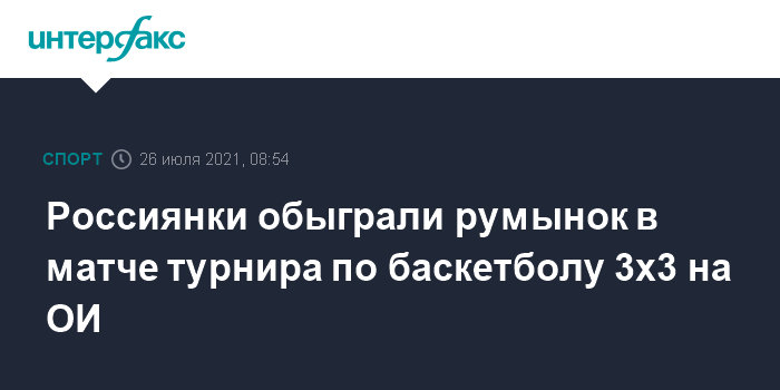 Москва. 26 июля. INTERFAX.RU - Женская сборная России по баскетболу 3x3 обыграла соперниц из Румынии в матче группового турнира Олимпиады-2020, проходящей в Токио.