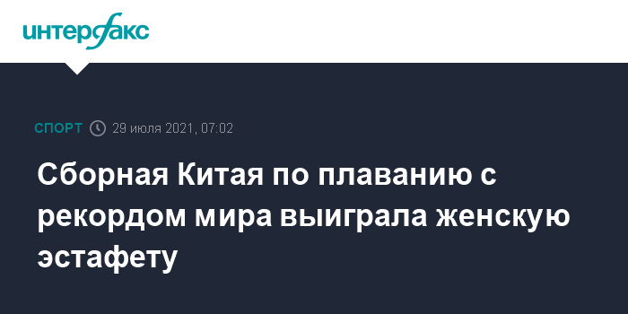 Москва. 29 июля. INTERFAX.RU - Китайские пловчихи завоевали "золото" летней Олимпиады в Токио в эстафете 4х200 м вольным стилем.
