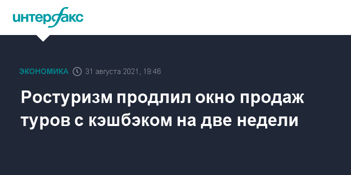 Москва. 31 августа. INTERFAX.RU - Ростуризм решил продлить на две недели, до 15 сентября четвертый этап продаж туров по России с кэшбэком, объявила глава ведомства Зарина Догузова.