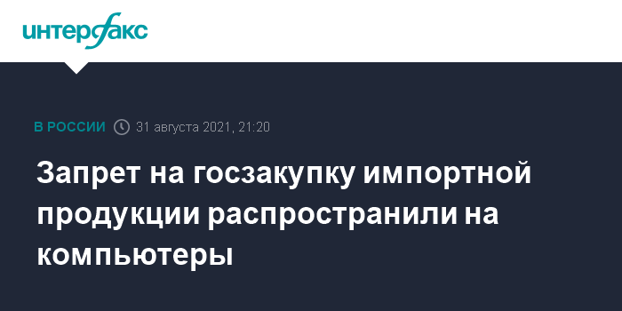 Москва. 31 августа. INTERFAX.RU - Правительство распространило запрет на госзакупку иностранной промпродукции (введен постановлением №616) на компьютерную технику, следует из правительственного постановления, опубликованного на портале правовой информации.