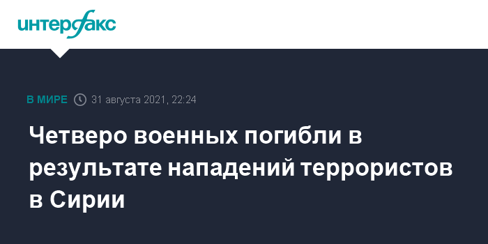"Существенно обострилась обстановка в районе Деръа Аль-Балад провинции Деръа. Нападениям подпольных ячеек террористов подвергся ряд государственных учреждений, а также подразделения правительственных сил, выполняющие задачи по поддержанию правопорядка. Погибло четыре сирийских военнослужащих, еще восемь получили ранения", - сказал Кулить на брифинге во вторник.