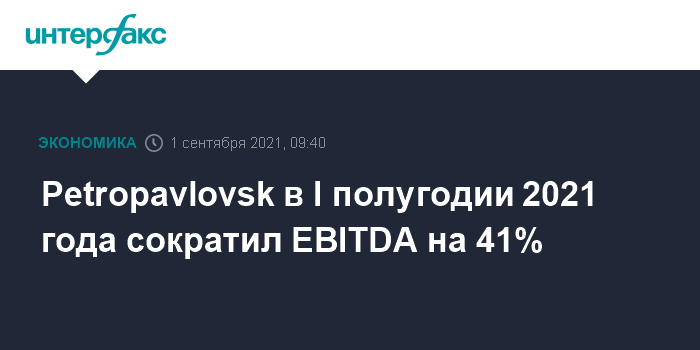 Москва. 1 сентября. INTERFAX.RU - В I полугодии 2021 года золотодобытчик Petropavlovsk сократил EBITDA на 41% по сравнению с аналогичным периодом прошлого года, до $114,3 млн, говорится в отчете компании. Аналитики ожидали снижения EBITDA Petropavlovsk по итогам I полугодия на 28-45%.