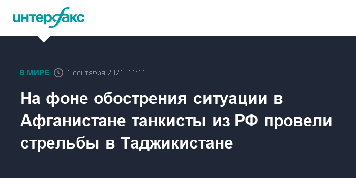 Москва. 1 сентября. INTERFAX.RU - На фоне обострения ситуации в Афганистане российские танкисты провели боевые стрельбы в горах Таджикистана, сообщает пресс-служба Центрального военного округа (ЦВО) в среду.