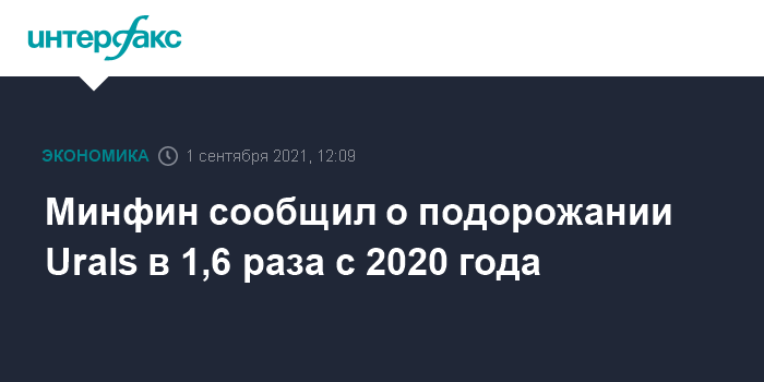 Москва. 1 сентября. INTERFAX.RU - В январе-августе 2021 года средняя цена нефти марки Urals сложилась в размере $65,1 за баррель, сообщил Минфин.