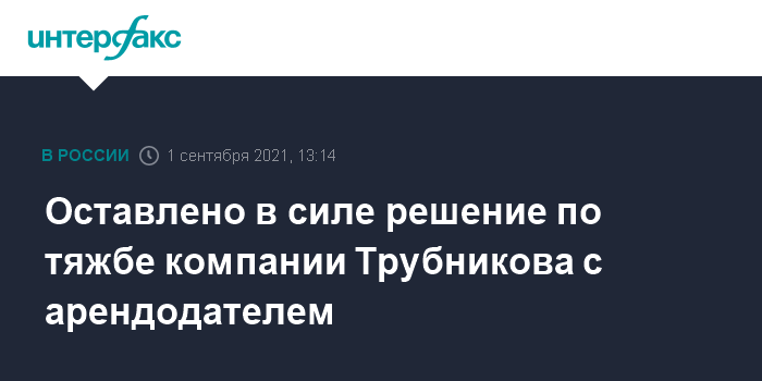 Оставлено в силе решение по тяжбе компании Трубникова с арендодателем