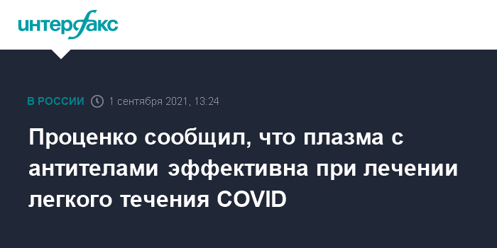"У нас сейчас есть понимание, когда плазма эффективна и у кого она эффективна. Она эффективна в начале заболевания у пациентов, у которых COVID-19 не развивается в тяжелой форме", - сказал Проценко, отвечая на вопрос "Интерфакса" в рамках марафона "Новое знание".