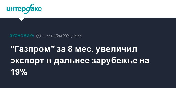 "Газпром" за 8 мес. увеличил экспорт в дальнее зарубежье на 19%
