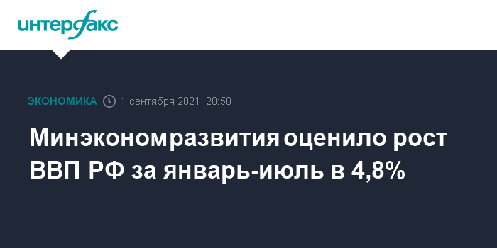 В целом за январь-июль 2021 года министерство оценило рост ВВП РФ на 4,8% по сравнению с аналогичным периодом 2020 года.