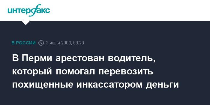 Москва. 3 июля. INTERFAX.RU - Ленинский районный суд Перми избрал для водителя, помогавшего перевозить похищенные пермским инкассатором 250 млн рублей, меру пресечения в виде содержания под стражей.