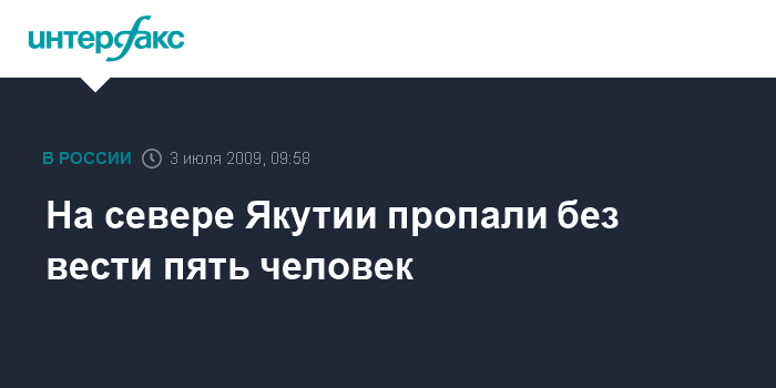 Москва. 3 июля. INTERFAX.RU - В Анабарском районе Якутии, расположенном на побережье Ледовитого океана, организованы поиски пяти местных жителей, пропавших без вести на реке Анабар.