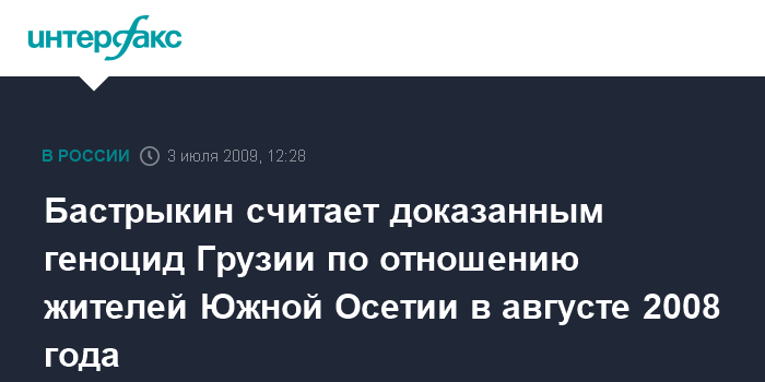 Москва. 3 июля. INTERFAX.RU - Глава Следственного комитета при прокуратуре РФ Александр Бастрыкин заявил, что следствием собраны материалы, доказывающие геноцид и убийства мирных жителей в Южной Осетии в августе прошлого года.