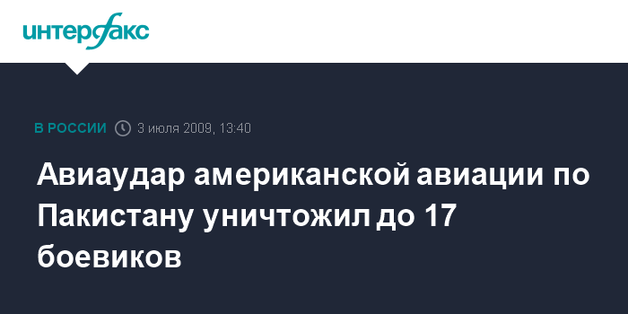 Вашингтон. 3 июля. INTERFAX.RU - Жертвами очередного авиаудара, осуществленного американским беспилотником по территории Пакистана стали, по меньшей мере, 15 человек, еще 25 ранены, сообщает CNN.