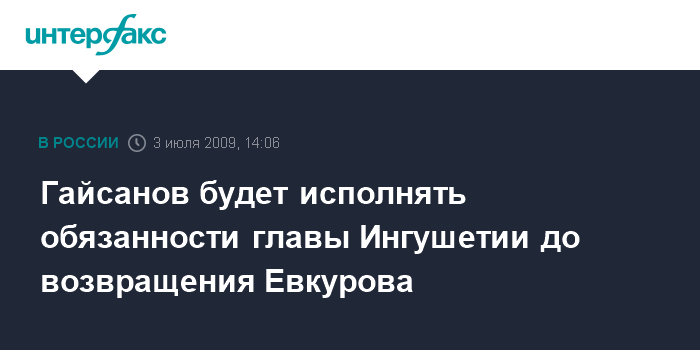 Гайсанов будет исполнять обязанности главы Ингушетии до возвращения Евкурова