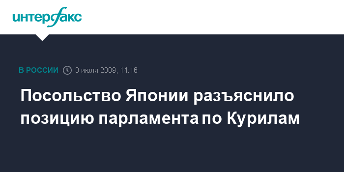 Москва. 3 июля. INTERFAX.RU - Решение японского парламента по Курилам нельзя рассматривать как ужесточение позиции Токио по территориальному вопросу, заявил "Интерфаксу" министр посольства Японии в РФ Акира Имамура.
