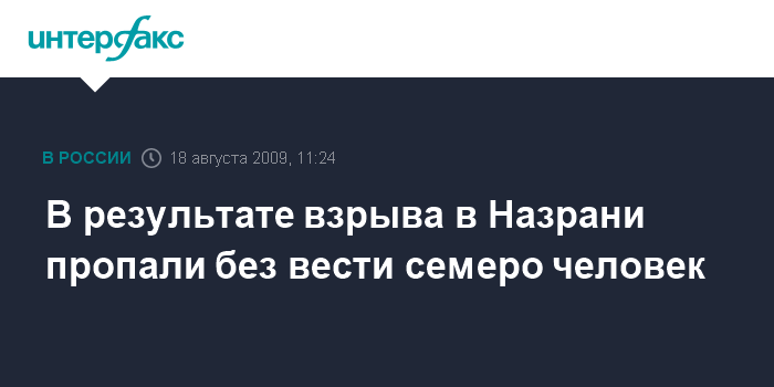 Москва. 18 августа. INTERFAX.RU - Пропавшими без вести в результате взрыва в ГУВД Назрани, по данным СКП РФ, числятся семь человек, сообщил "Интерфаксу" во вторник представитель СКП РФ Владимир Маркин.