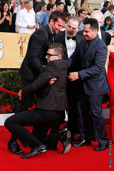 20-я церемония вручения наград ежегодной премии Гильдии киноактеров США Screen Actors Guild Awards. Это любимый трюк Виталия Седюка. В "нижних объятиях" - актер Брэдли Купер.