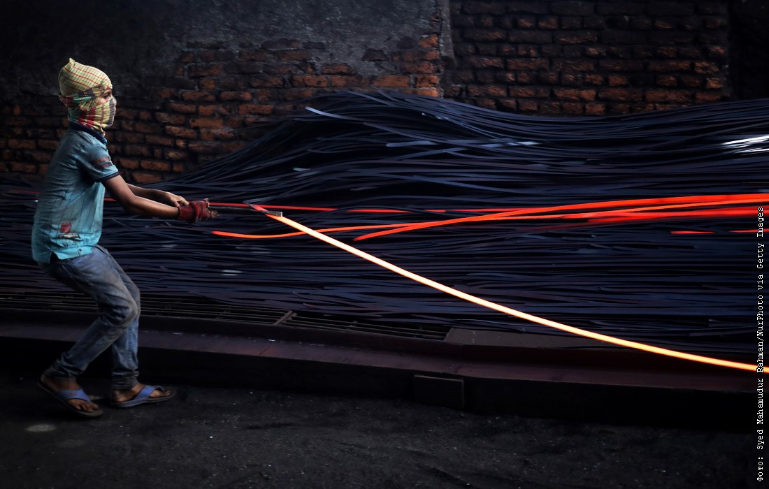 Двенадцатилетний житель Дакки работает на заводе по переработке железа, Бангладеш