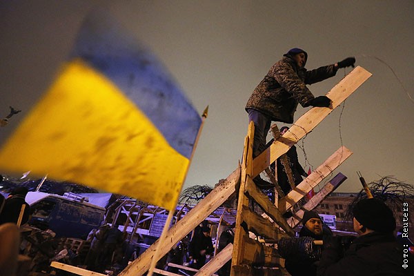Первую ночь после попытки штурма правоохранителями "евромайдана" митингующие на майдане Независимости провели, сооружая новые и укрепляя ранее возведенные баррикады, а также принимая пополнение от "майдановцев" из других областей Украины