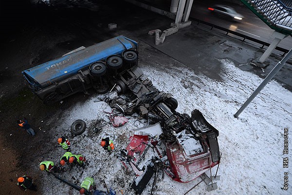 Грузовик упал с эстакады в Москве
