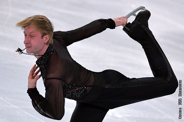 Евгений Плющенко (Россия) выступает в произвольной программе мужского одиночного катания командных соревнований по фигурному катанию.