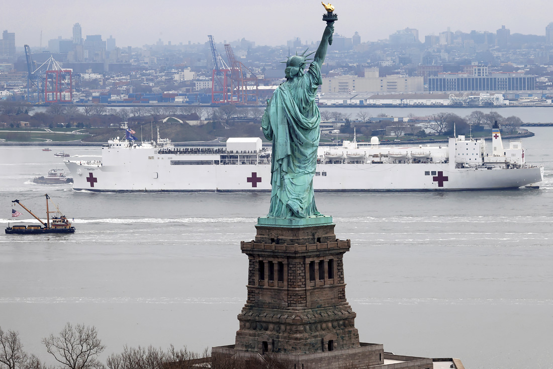 1 апреля. В Нью-Йоркской гавани разместился плавучий госпиталь Comfort ВМС США, который насчитывает 1000 больничных коек и 12 операционных. В настоящий момент в городе известно о 41 771 заболевших COVID-19 и 1 096 летальных исходах.