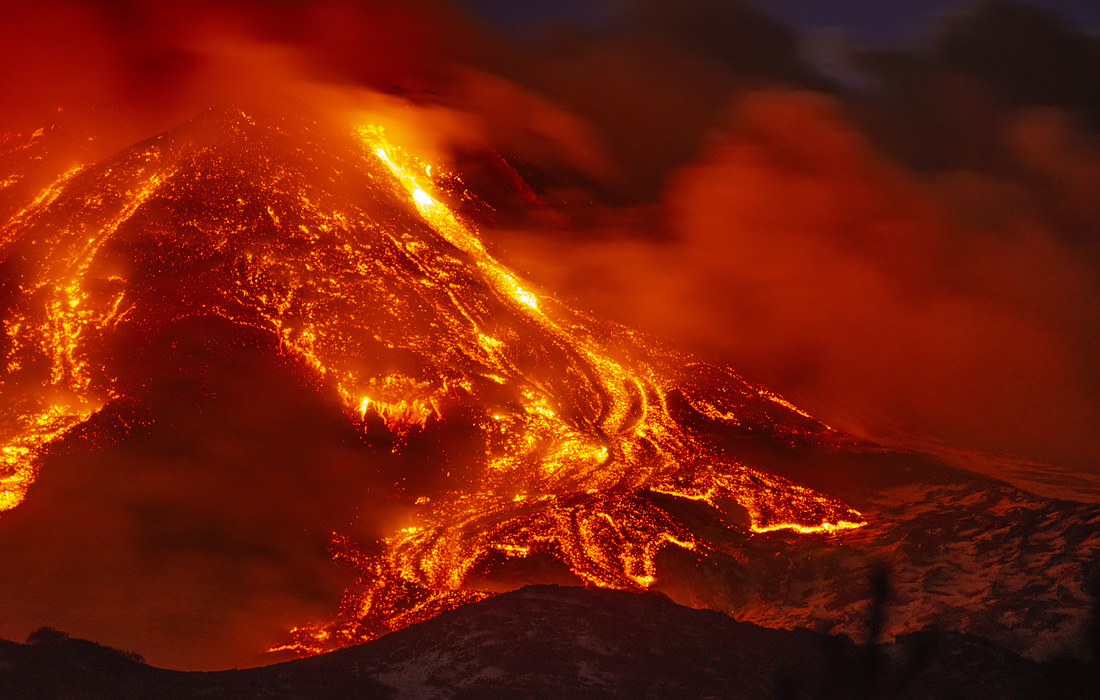 На итальянском острове Сицилия во вторник, 16 февраля, началось извержение вулкана Этна. Выброшенные в воздух облака пепла и дыма привели к тому, что аэропорт Катании приостановил прием и отправку авиарейсов. Итальянские вулканологи отмечают, что пока извержение не выглядит опасным для окрестных городов.