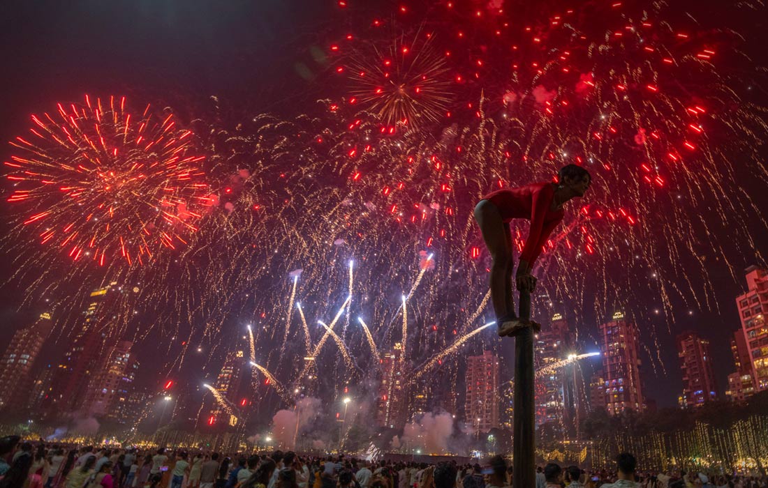 Фейерверки во время фестиваля огней Дивали в Мумбаи