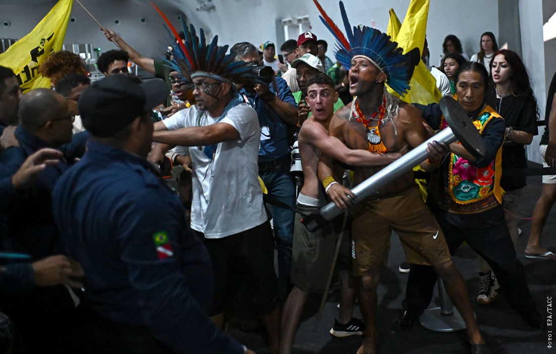 Протестующие из числа коренных народов пытались проникнуть на территорию проведения климатической конференции COP-30 в бразильском Белене