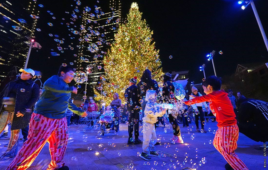 Церемония зажжения огней на рождественской ели в Техасе