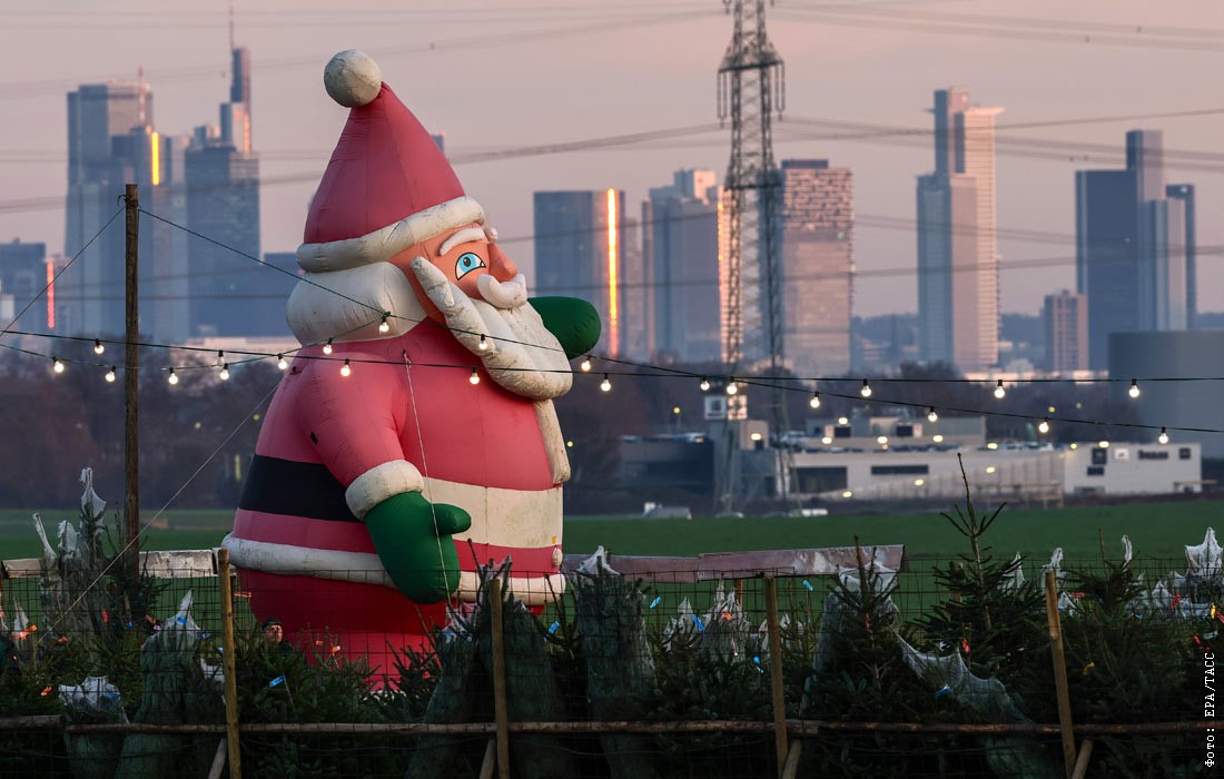 Надувная фигура Санта-Клауса в немецком Эшборне