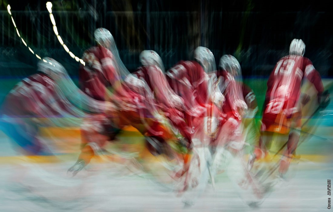 Хоккеисты сборной Швейцарии разминаются перед матчем с Италией