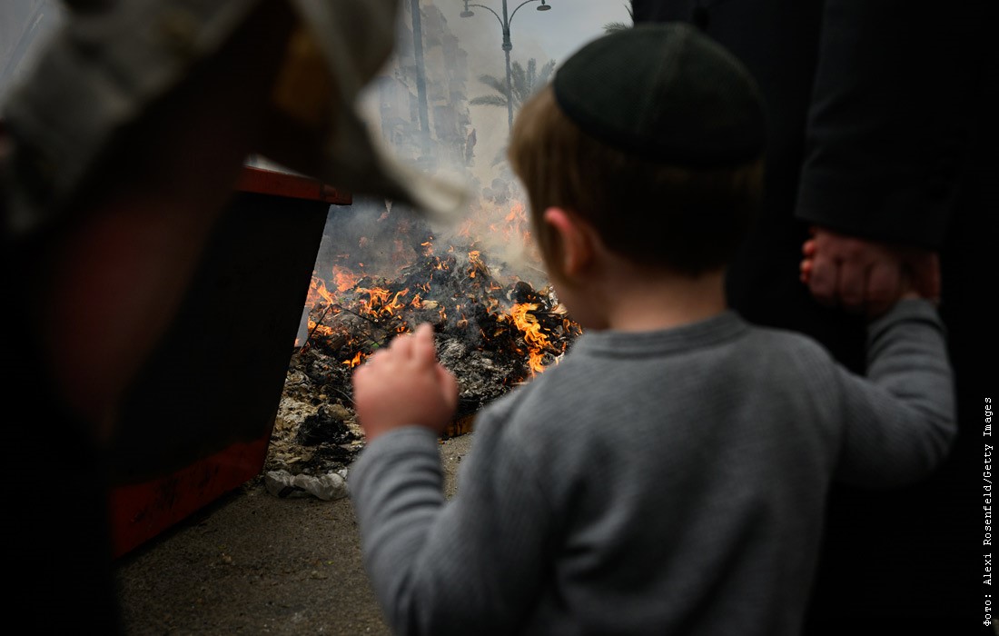Ритуал сжигания хамеца в преддверии Песаха в Бней-Браке, Израиль