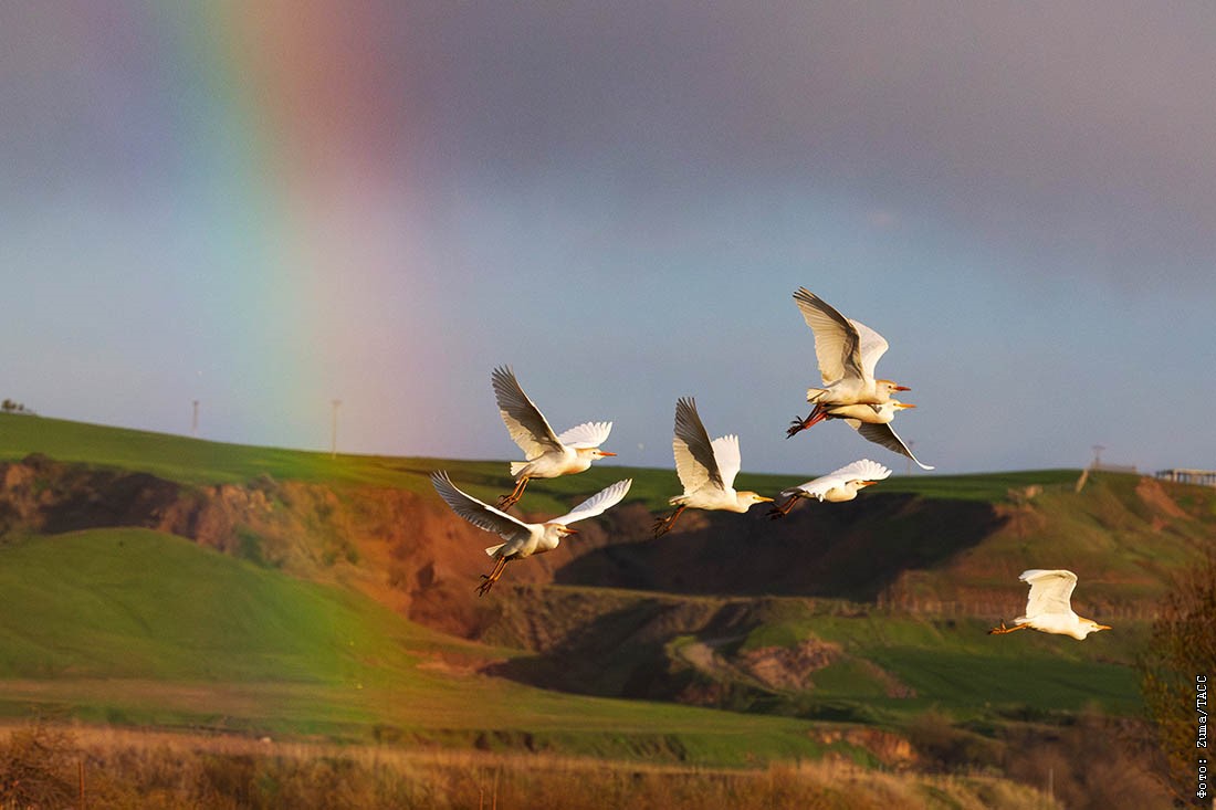 Белые цапли в Диярбакыре, Турция