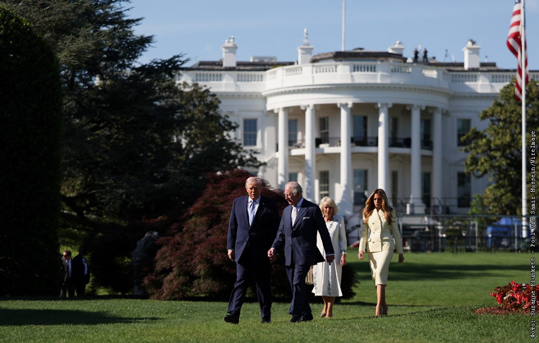 В первый день государственного визита в США Король Карл III и королева Камилла вместе с президентом США и первой леди посетили сады Белого дома