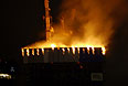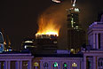 По другой версии, пожар мог вызвать прожектор на строительном кране. "Предполагается, что пожар произошел в результате теплового воздействия нагретой поверхности прожектора, установленного на кране, на сгораемый материал, используемый для накрытия бетона", - сообщили в пресс-службе ГУ МЧС России по Москве.